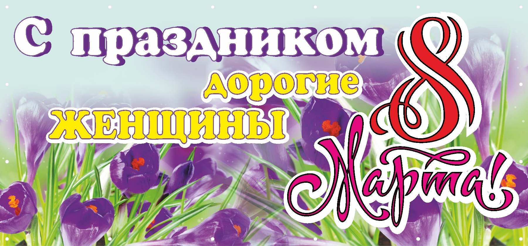 - Текст. Могут быть размещены поздравления («С 8 марта!», «С праздником весны!»), лозунги или пожелания.