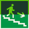 Эвакуационный знак Е13 "Направление к эвакуационному выходу по лестнице вниз направо" применяется в качестве пиктограммы (наклейки) для световых эвакуационных указателей. Знак Е13 предназначен для размещения на лестничных площадках, а также стенах, прилегающих к лестничному маршу. Эвакуационный знак изготовлен на белой самоклеящейся пленке и с различными типоразмерами.