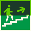 Эвакуационный знак Е15 "Направление к эвакуационному выходу по лестнице вверх направо" применяется в качестве пиктограммы (наклейки) для световых эвакуационных указателей. Знак Е15 предназначен для размещения на лестничных площадках, а также стенах, прилегающих к лестничному маршу. Эвакуационный знак изготовлен на белой самоклеящейся пленке и с различными типоразмерами.