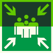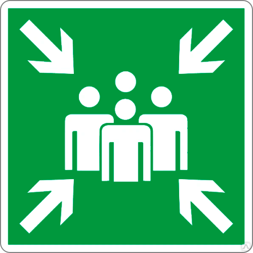 Эвакуационный знак Е21 " Пункт (место) сбора" размещается на дверях, стенах помещений и в других местах для обозначения заранее предусмотренных пунктов (мест) сбора людей в случае возникновения пожара, аварии или другой чрезвычайной ситуации. Знак Е21 изготавливается на белой самоклеящейся пленке, имеет различные типоразмеры.