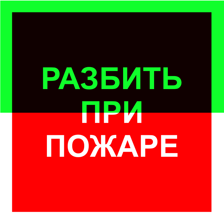 Знак F17 «Разбить при пожаре» предназначен для обозначения стеклянных элементов, которые необходимо разбить в случае возникновения пожара, чтобы получить доступ к важной информации или инструменту.