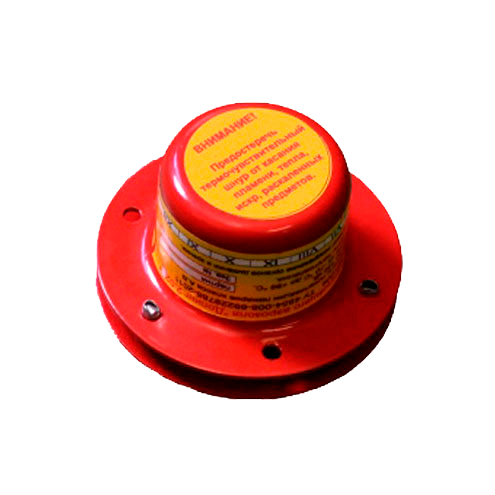 Генератор огнетушащего аэрозоля с термошнуром, температура срабатывания 170°C, защищаемый объем 0.2 м³, инерционность срабатывания 5 сек, время подачи огнетушащего аэрозоля 2.5...5 сек, диапазон рабочих температур -60...+60°C, габаритные размеры 65х38 мм