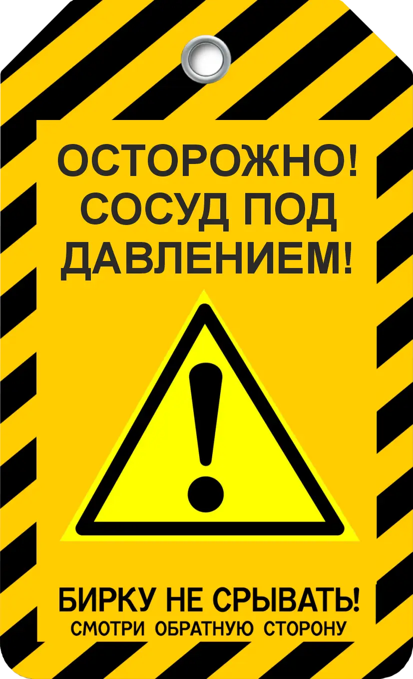 Информационная бирка " Осторожно сосуд под давлением" используется на объектах и оборудовании.