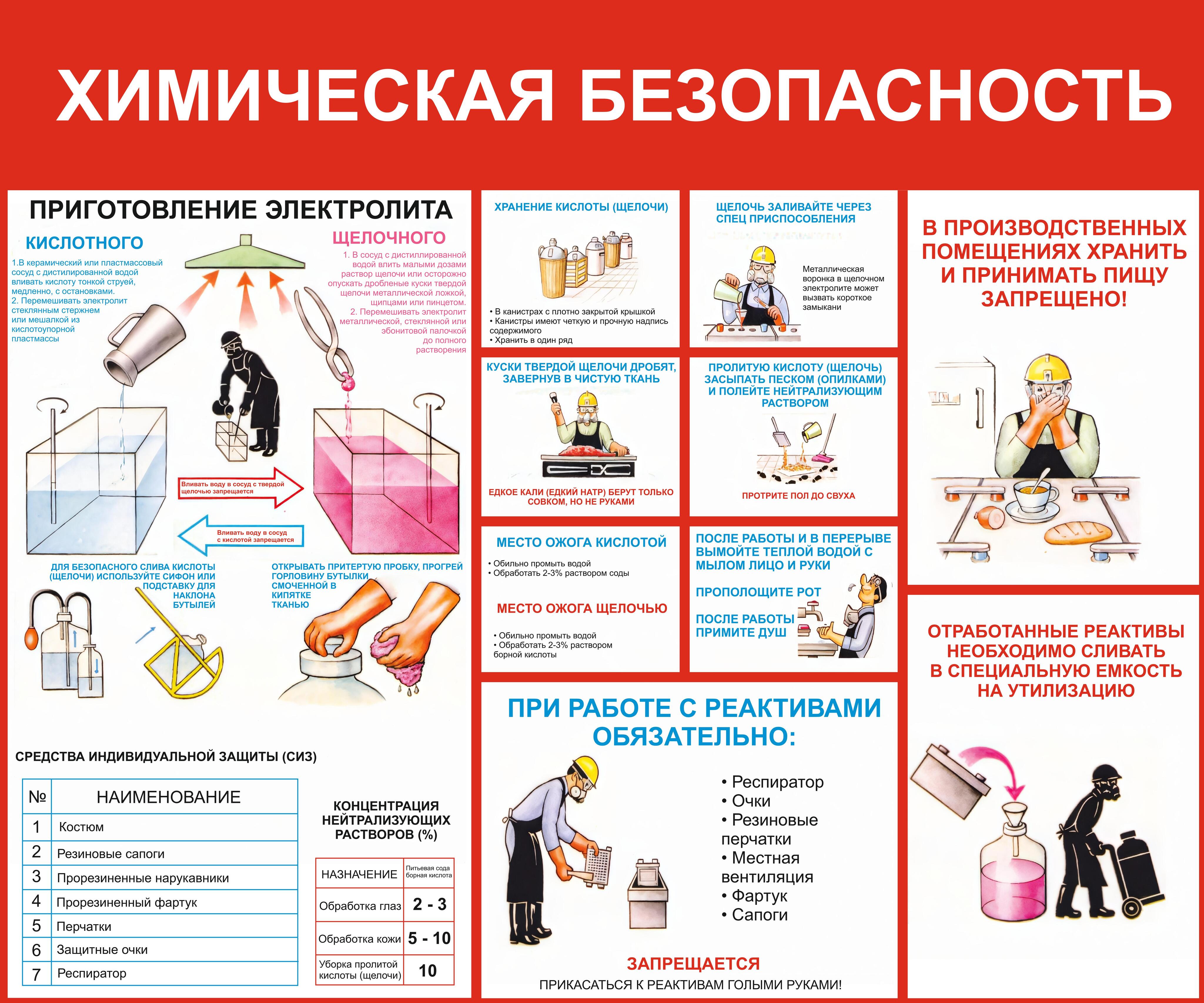 Информационный стенд "Химическая безопасность" – это ваш надежный помощник в обеспечении безопасного ведения работ с химическими веществами! Преимущества: - Соответствие требованиям охраны труда; - Повышение уровня информированности сотрудников о мерах безопасности; - Снижение риска несчастных случаев и профессиональных заболеваний; - Удобство размещения благодаря компактным размерам и прочному материалу исполнения. Ваше спокойствие и безопасность персонала – наш приоритет!