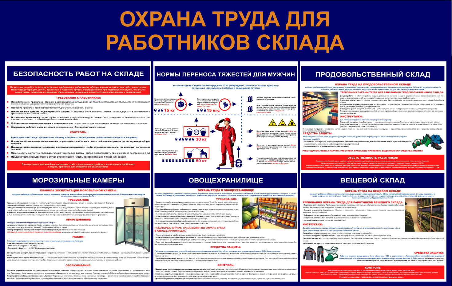 Информационный стенд «Охрана труда для работников склада» — это ваш надежный помощник в обеспечении безопасности сотрудников! Повысьте уровень осведомленности персонала о правилах охраны труда, предотвращайте несчастные случаи и снижайте риски производственных травм. Сочетание наглядности и доступности информации способствует быстрому усвоению материала и формирует ответственное отношение к вопросам безопасности. Удобен в установке и эксплуатации.