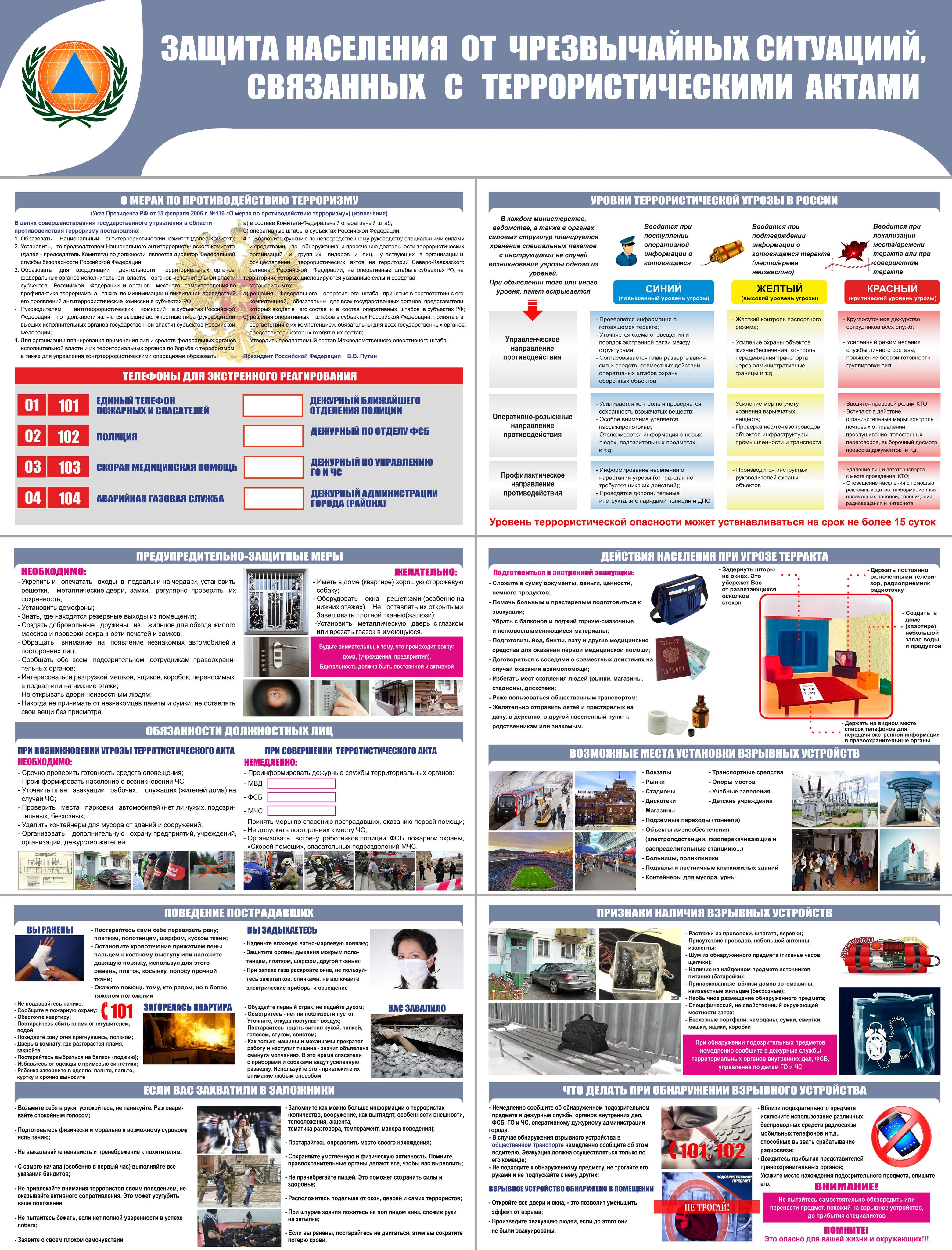 Современный информационный стенд «Защита населения от чрезвычайных ситуаций, связанных с терроризмом» — эффективный инструмент повышения осведомленности граждан! С его помощью вы обеспечите население важной информацией о мерах безопасности, повысите уровень готовности к чрезвычайным ситуациям и укрепите доверие аудитории. Стильный дизайн и информативность сделают ваш стенд важным элементом любого общественного пространства! Покупайте сейчас и будьте уверены в своей защите!