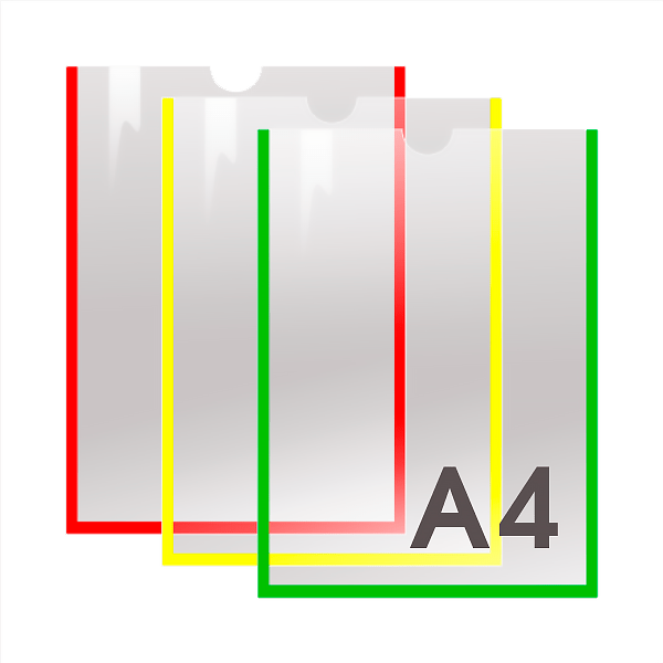 Самоклеящийся информационный карман для полиграфической продукции формата из пластика толщиной 0,3 мм оформлен цветной рамкой на выбор. Карман для стенда — универсальное изделие, предназначенное для размещения и быстрой замены бумажных материалов: документов, инструкций, схем.