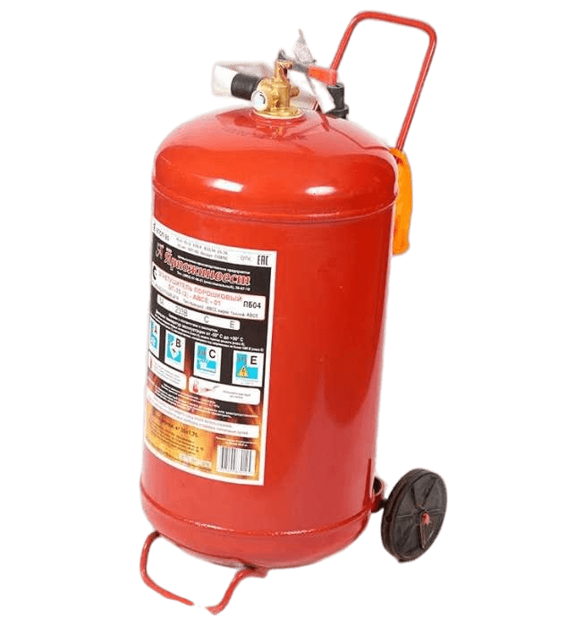 Огнетушитель порошковый передвижной ОП-20 Ярпожинвест (г. Ярославль) - огнетушитель передвижного типа для автозаправок, складских помещений и других объектов. Масса заряда огнетушащего вещества - 20 кг. Ранг по модельным очагам: 6А, 233В, С, Е (до 1000В). Без перекрывного ствола.