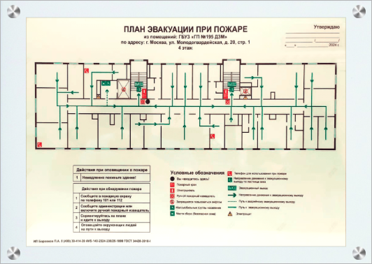 Элегантное и надежное решение – план эвакуации формата А2 на оргстекле размером 400х600 мм. Прочный материал обеспечивает долговечность эксплуатации, а прозрачность позволяет сохранить эстетику интерьера. Легко читаемая графика и четкие указания обеспечивают быструю ориентацию в экстренной ситуации. Совершенствуйте безопасность вашего помещения профессионально и стильно!