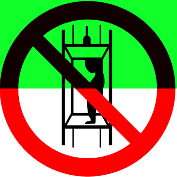 Знак Р13 "Запрещается подъем (спуск) людей по шахтному стволу (запрещается транспортирование пассажиров)" размещается на дверях грузовых лифтов и других подъёмных механизмов.