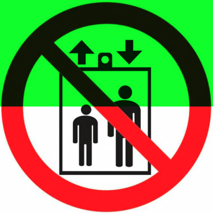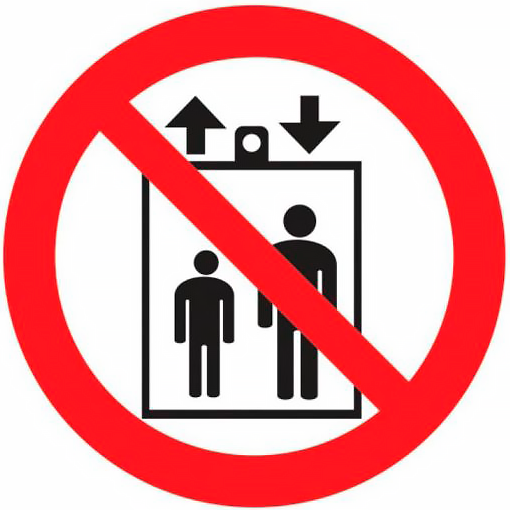 Знак Р34 "Запрещается пользоваться лифтом для подъема (спуска) людей" размещается на дверях грузовых лифтов и других подъёмных механизмах. Знак входит в состав группового знака безопасности «При пожаре лифтом не пользоваться, выходить по лестнице».
