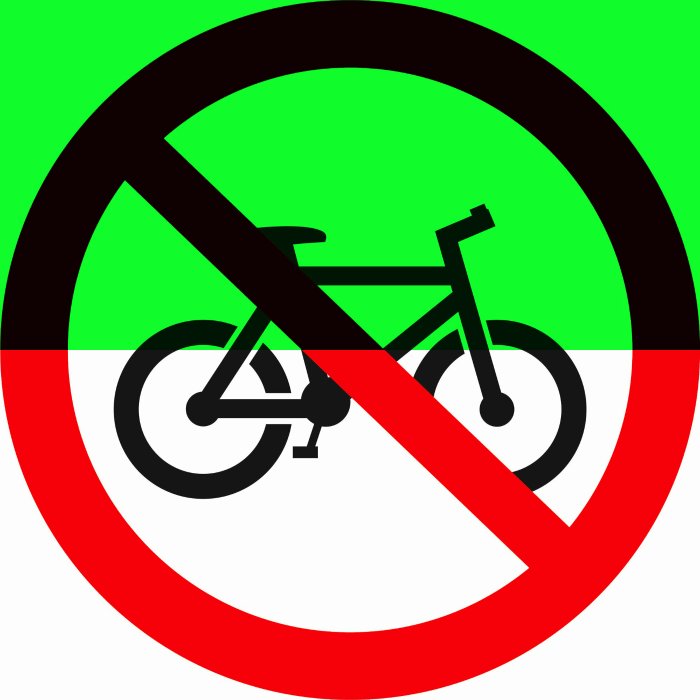 Знак Р57 "Вход с велосипедом запрещен. Езда на велосипеде запрещена" — запрещающий знак, который размещается в помещении или на территории, где запрещён вход с велосипедом.
