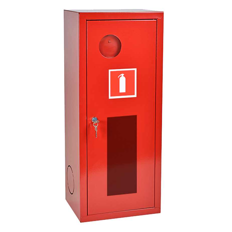 - имеет окно, через которое можно проверить пригодность хранящегося огнетушителя;