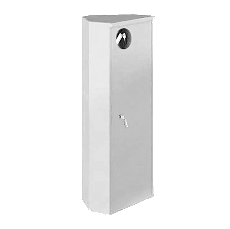 Шкаф для размещения огнетушителя массой 6-12 кг., установочные габариты: ширина 300 мм, высота 700 мм, глубина 240 мм; углового типа, С ЦЕЛЬНОМЕТАЛЛИЧЕСКОЙ ДВЕРЦЕЙ, красного или белого цвета (литера К или Б в названии шкафа); оснащён почтовым замком и гнездом для запасного ключа.
