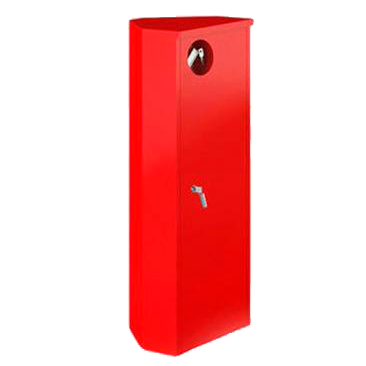 Шкаф для размещения огнетушителя массой 6-12 кг., установочные габариты: ширина 300 мм, высота 700 мм, глубина 240 мм; углового типа, С ЦЕЛЬНОМЕТАЛЛИЧЕСКОЙ ДВЕРЦЕЙ, красного или белого цвета (литера К или Б в названии шкафа); оснащён почтовым замком и гнездом для запасного ключа.