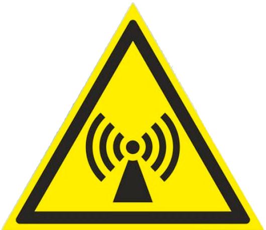 Знак W12 "Внимание. Электромагнитное поле" располагается на дверях помещений, оборудовании, приборах и в других местах, где действуют электромагнитные поля.