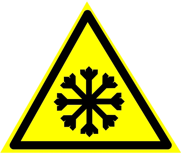 Знак W17 "Осторожно. Холод" располагается на дверцах холодильников и морозильных камер, компрессорных агрегатах и других холодильных аппаратах.