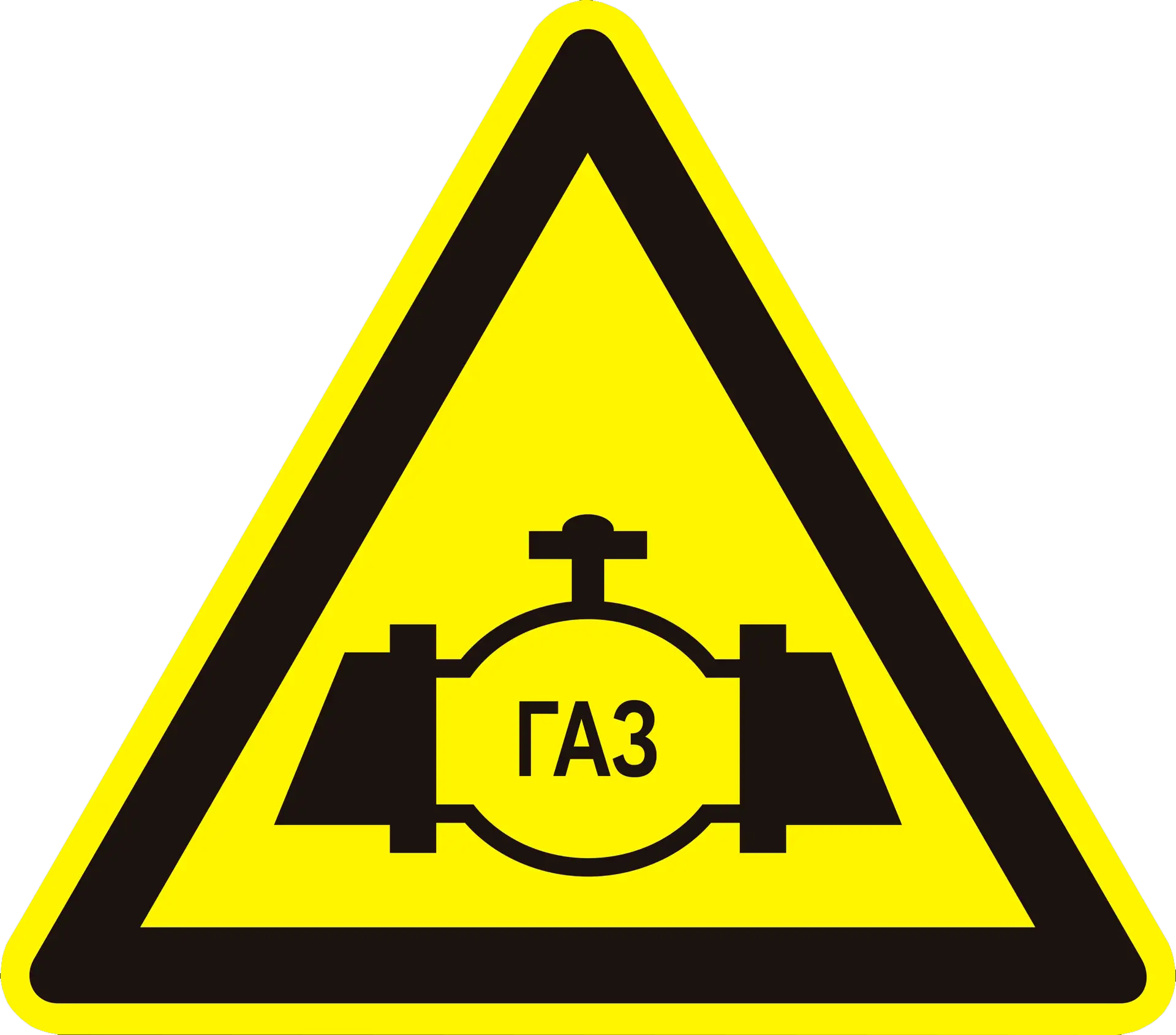 Знак W38 "Осторожно. Газопровод" предупреждающий знак, который соответствует ГОСТ Р 12.4.026.